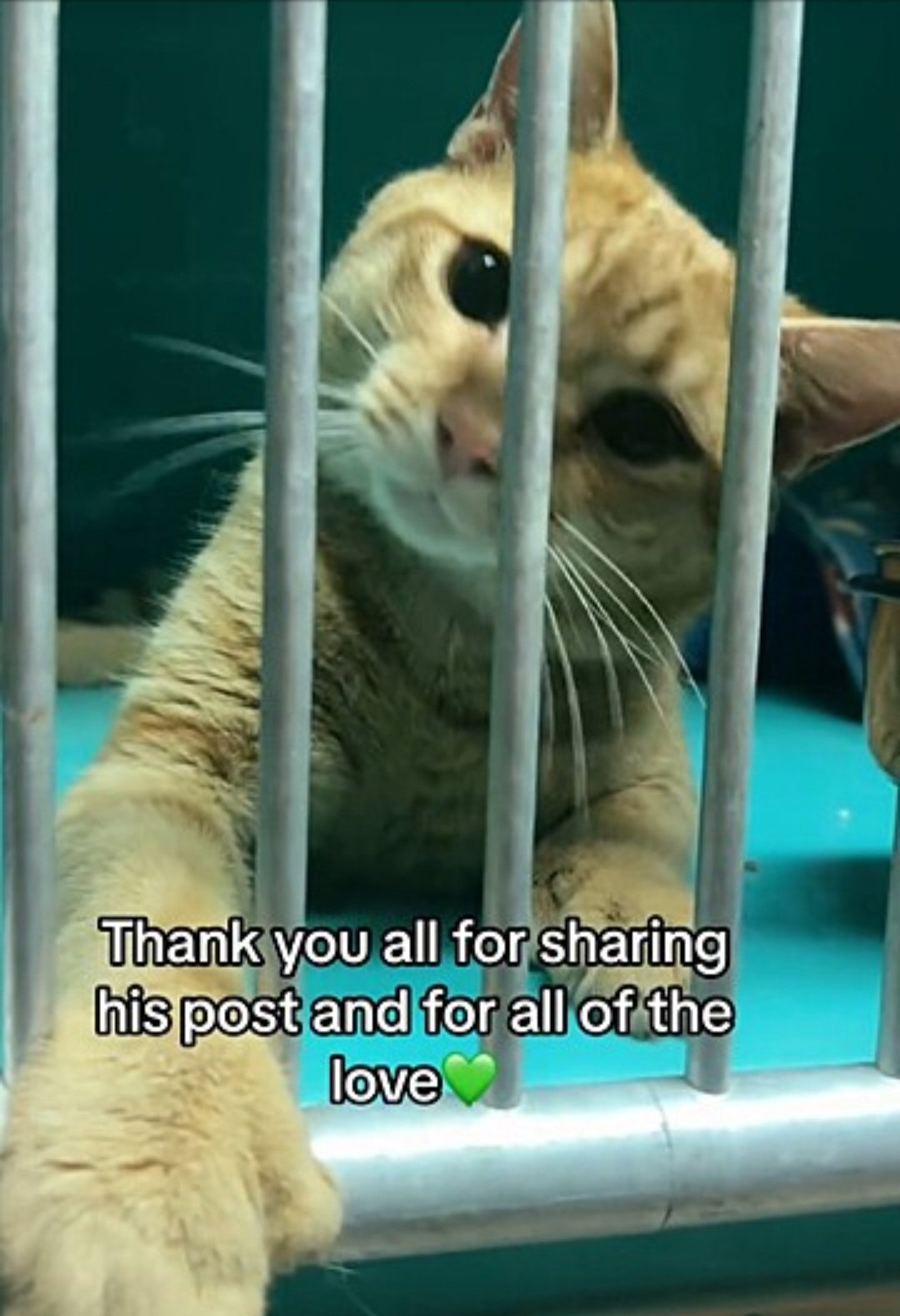 Gato laranja estende pata para visitantes em busca de lar; veja o que aconteceu