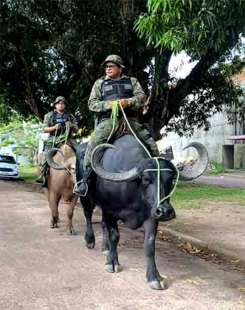 Patrulhamento em búfalos vira atração em arquipélago brasileiro
