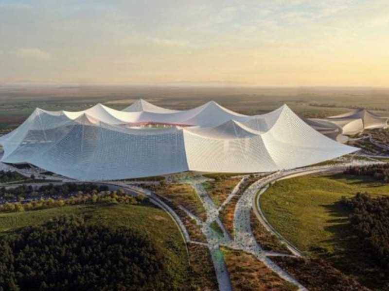 As imagens do Grand Stade Hassan II, estádio que será construído em Casablanca, Marrocos, para a Copa do Mundo de 2030, foram divulgadas nesta quarta-feira (21) e chamaram a atenção nas redes sociais. O projeto, feito pelos escritórios Oualalou+Choi e Populous, promete ser “o maior estádio de futebol do mundo”. Inspirado na reunião social marroquina “moussem”, o estádio terá capacidade para 29,5 mil espectadores em cada lado, com um grande telhado em forma de tenda e jardins elevados ao redor do campo.