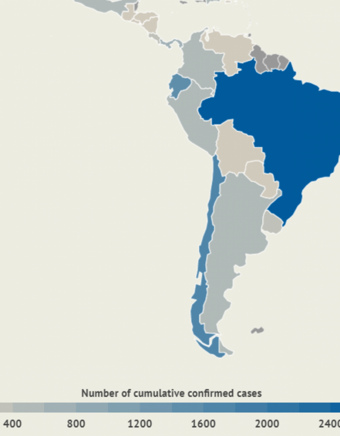 Na América Latina, Brasil é o país que mais cresce em casos confirmados de Covid-19