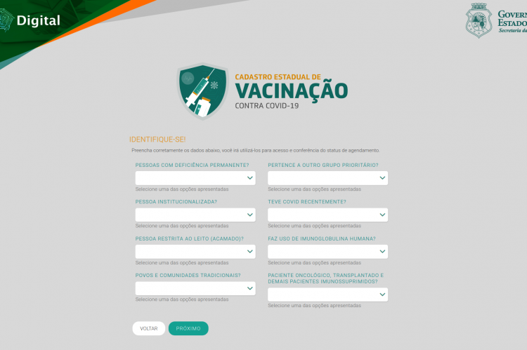 Sistema do Governo do Estado permite que moradores do Ceará que se enquadram nos grupos prioritários realizem o cadastro; agendamento está disponível apenas para as categorias da fase 1