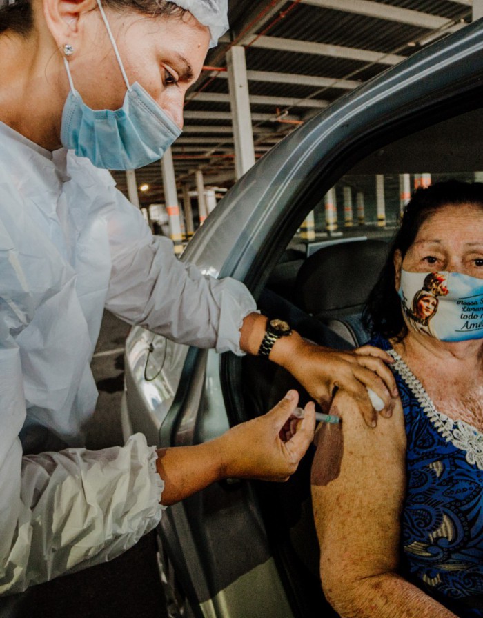Idosos que perderam a imunização da segunda dose (D2) da vacina contra o coronavírus podem ir aos pontos com atendimento em drive-thru de Fortaleza para receber a aplicação. É necessário apresentar comprovante de agendamento, documento com foto e comprovante de endereço. Informação foi destacada hoje, 9, em live diária da Secretaria Municipal da Saúde (SMS) nas redes sociais.