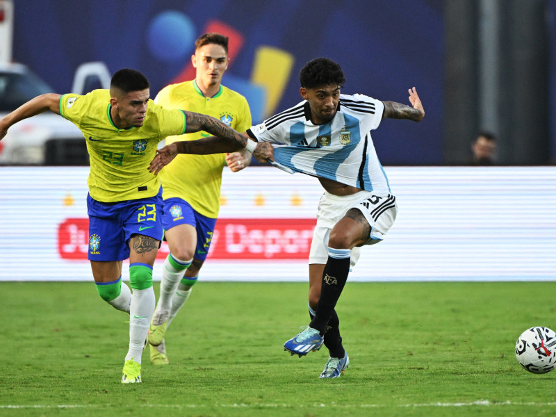 O jogo começou bem estudado. A primeira chance de gol saiu aos 15 minutos do primeiro tempo. Almada arriscou em cobrança de falta e carimbou a trave. Os brasileiros responderam logo na sequência, em chute de Alexsander que passou com perigo pela esquerda.