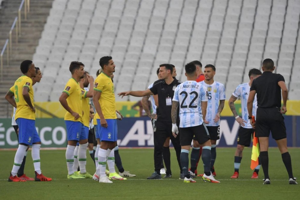 O confronto válido pelas Eliminatórias da Copa do Mundo de 2022 foi interrompido por agentes da Anvisa por irregularidade de quatro atletas da Argentina