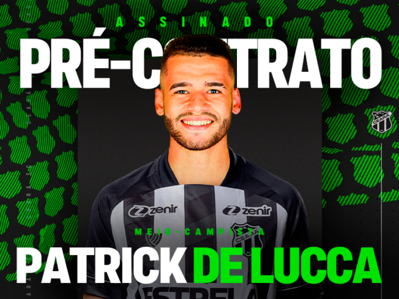 O Ceará oficializou na noite desta sexta-feira, 19, a contratação por empréstimo do volante Patrick de Lucca. Pertencente ao Vasco da Gama, com quem tem contrato até 2025, o jogador assinou contrato com o Vovô até o final de 2024 e, já regularizado, deverá se apresentar no clube na próxima semana.