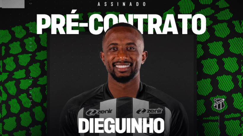 O Ceará oficializou nesta segunda-feira, 23, a contratação do lateral-direito Dieguinho. O contrato assinado entre o ex-jogador do Goiás, a quem defendeu nos últimos quatro anos, e o Vovô é de dois anos, conforme antecipado pelo Esportes O POVO.