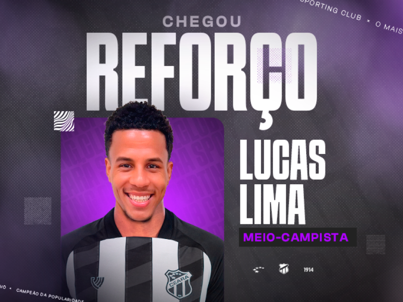 O Ceará oficializou a compra do meio-campista Lucas Lima. Com a negociação, o Alvinegro teve que desembolsar R$ 3 milhões, para ter 50% dos direitos econômicos do jogador que atuava pelo São Bernardo/SP. O novo contrato vai até o fim de 2025.