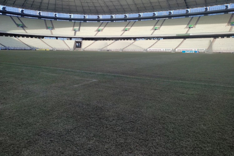 A Secretaria do Esporte e Juventude (Sejuv) falou ao Esportes O POVO que a instalação do gramado híbrido na Arena Castelão não vai ocorrer nesta temporada. A possibilidade havia sido apresentada em coletiva no fim de dezembro que tratou da situação da grama do estádio.