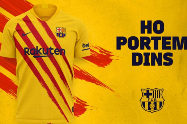 O Barcelona divulgou, na manhã desta terça-feira, 12, seu novo uniforme. A camisa tem as cores amarela e vermelha, fazendo alusão à bandeira da Catalunha, região que busca se tornar independente da Espanha.