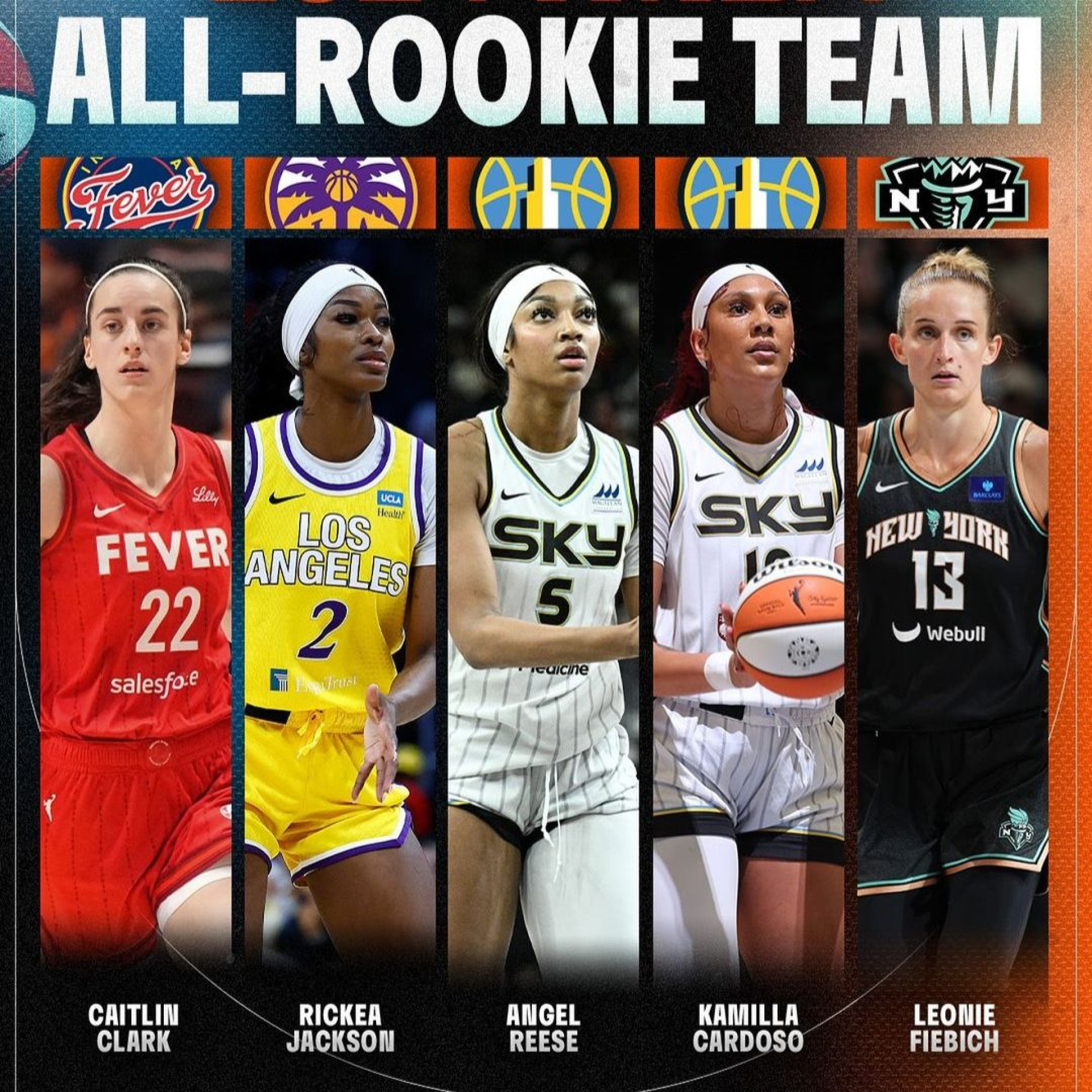 A brasileira Kamilla Cardoso, do Chicago Sky, foi selecionada para o time de melhores novatas da Women's National Basketball Association 2024. A pivô de 23 anos obteve uma média de 9,8 pontos e 7,9 rebotes na temporada regular, mas a equipe ficou em 10º lugar e não alcançou os playoffs.