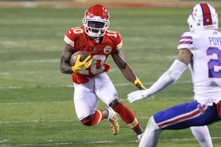 Patrick Mahomes, quarterback dos Chiefs, tem 25 anos e está na terceira temporada como titular da franquia do Missouri. Apesar do curto tempo na liga, ele acumula feitos impressionantes. Ele foi escolhido o jogador mais valioso (MVP) da temporada 2018-2019 e do Super Bowl LIV, disputado em 2020, após vitória contra o San Francisco 49ers. Ao entrar em campo pela decisão, ele se tornará o jogador mais novo a atuar em duas decisões nacionais consecutivas.