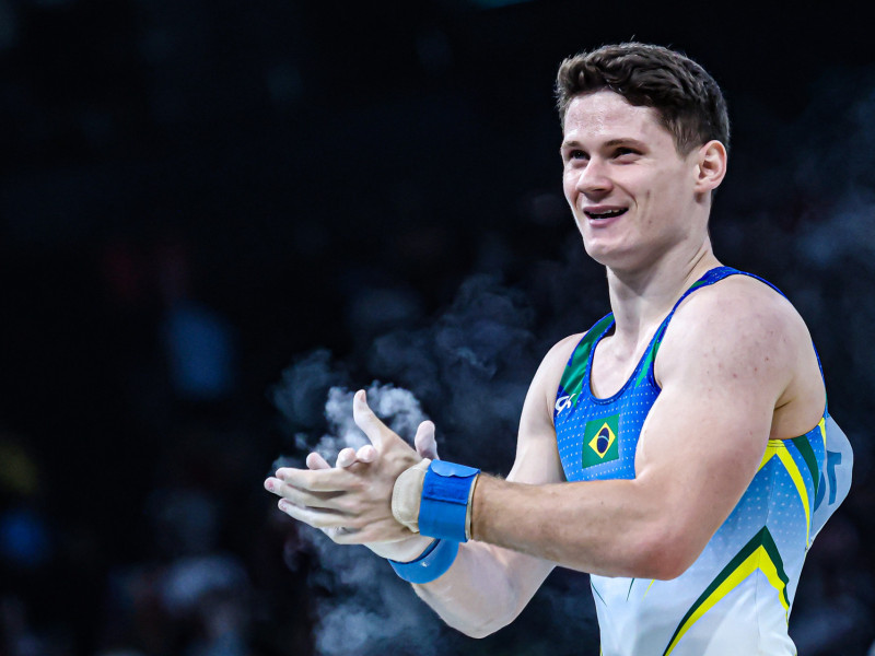 Diogo Soares, de 22 anos, foi constante e encaminhou a classificação à fase final da ginástica artistica dos Jogos Olímpicos de Paris neste sábado. Com uma nota total de 81.999 no individual geral, ele ocupa, até o momento, o sexto lugar.