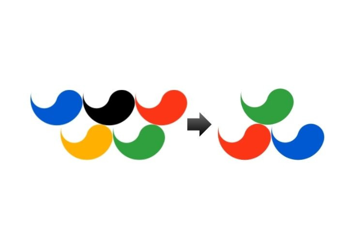 Anos depois o Comitê Olímpico Internacional (COI) solicitou a mudança no símbolo por ser muito parecido com o dos Jogos Olímpicos. Após algumas propostas ao longo dos anos, dois dos cinco componentes foram removidos.