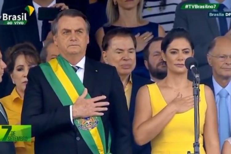 O presidente Jair Bolsonaro (PSL) contou com apoiadores em seu primeiro desfile militar pela Independência do Brasil, celebrada neste sábado, 7 de setembro. Bolsonaro acompanha a apresentação ao lado do empresário e apresentador Silvio Santos, dono do SBT, e do bispo Edir Macedo, líder da Igreja Universal do Reino de Deus e dono da Record, na Esplanada dos Ministérios.