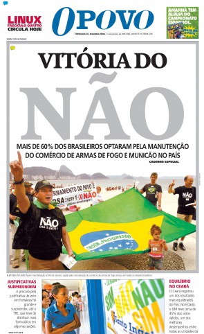 Em Uruburetama, o jornal destaca o forte movimento a favor da proibição das armas. Já no Cariri, a surpresa é a tranquilidade com que tudo ocorreu, “ao contrário de eleições comuns, durante o referendo, no Cariri não houve boca de urna, transporte de eleitores e agressões”. Há também o movimento da Igreja Católica a favor da proibição, que mobilizou bispos e freiras a votar, como é destaque na página 12 do caderno especial.