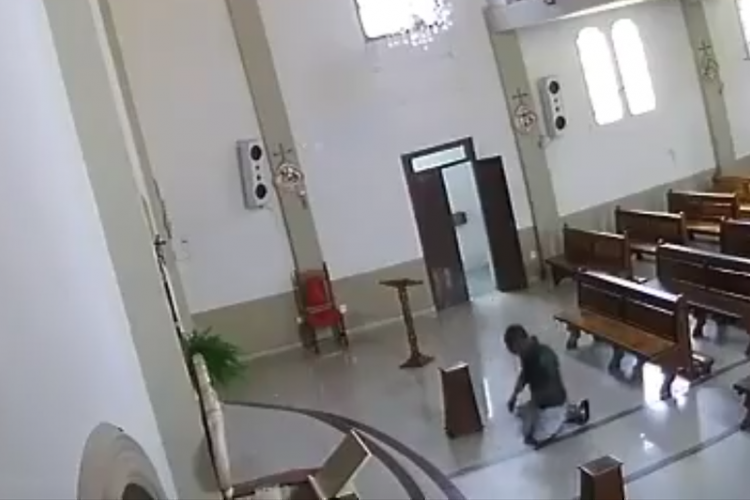 Vídeo: Homem se ajoelha e faz sinal da cruz antes de furtar dinheiro em convento