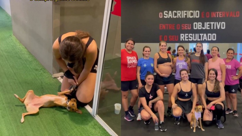 Cadela adotada vira atração em academia de Santa Catarina, esbanjando charme e simpatia e incentivando os alunos nos exercícios