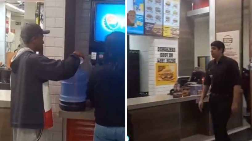 Um homem viralizou ao tentar encher um galão de 20 litros no refil de refrigerante em uma unidade do Burger King do Shopping Itapevi Center, na Grande São Paulo. A prática, no entanto, não é permitida, de acordo com as regras do estabelecimento.