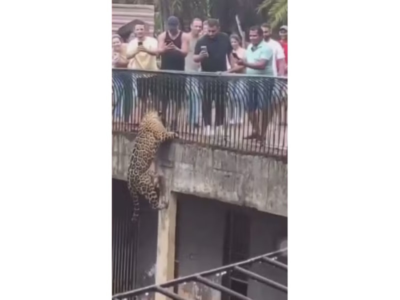 Onça-pintada escala parede de zoológico e assusta visitantes; veja vídeo