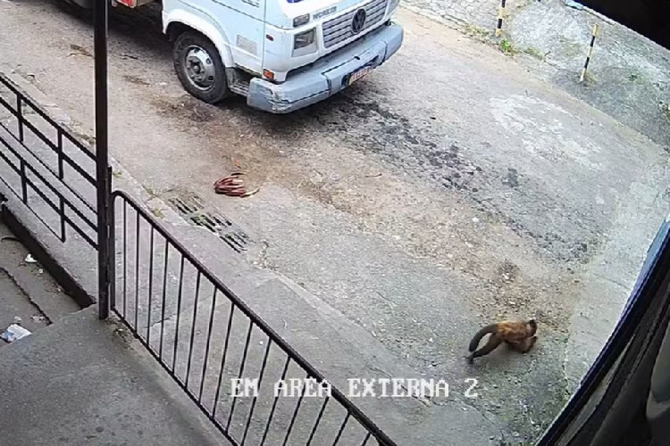 No pátio, a câmera interna grava os primeiros momentos do animal, que anda tranquilamente no presídio. Logo após a captura do animal, os agentes descobriram que o macaco havia fugido do BioParque do Rio.
