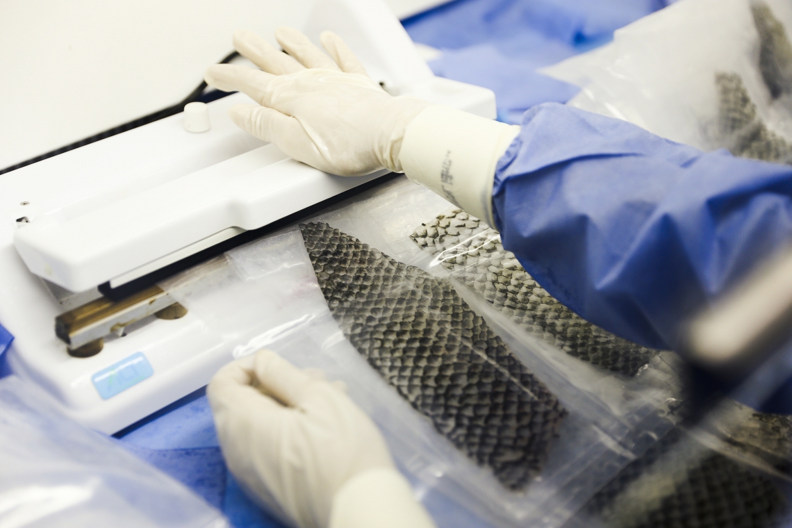 Antes de chegar ao Rio Grande do Sul, o produto passa por um processo de radioesterilização no Instituto de Pesquisas Energéticas Nucleares (Ipen), em São Paulo, o que aumenta a durabilidade das peles em até três anos e permite melhor conservação em temperatura ambiente.