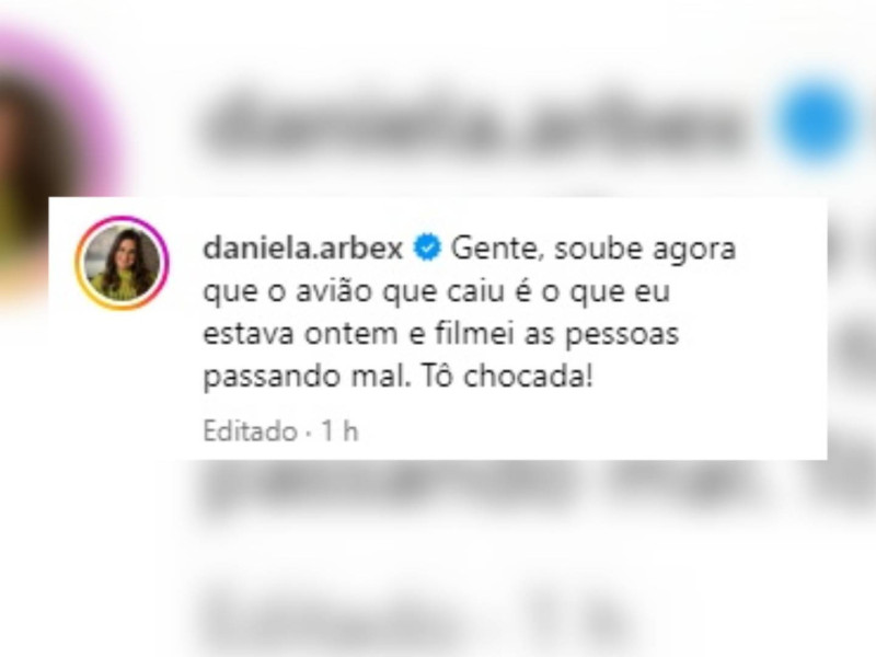 Após a repercussão do avião da companhia aérea Voepass que caiu na tarde desta sexta-feira, 9, em Vinhedo (SP), a jornalista Daniela Arbex, utilizou seu perfil no Instagram para relatar a experiência que teve na mesma aeronave um dia antes do acidente. A jornalista saiu de Ribeirão Preto com destino à Guarulhos, ambas cidades estão localizadas em São Paulo.