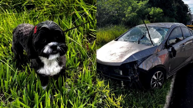Motorista capota carro ao transportar cachorro de maneira inadequada