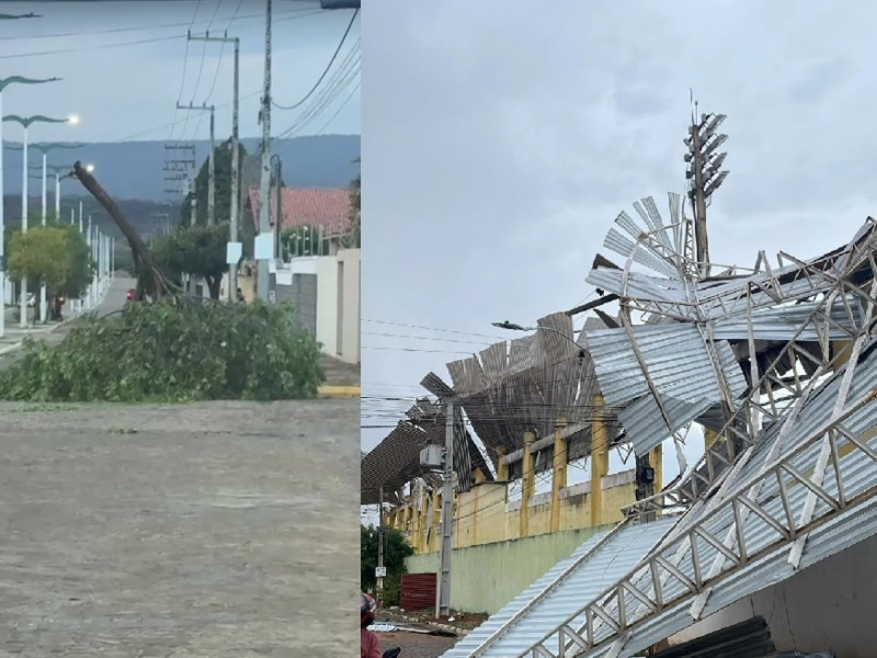 O Estádio Geraldão foi um dos pontos mais atingidos. Registros divulgados nas redes sociais mostram que a estrutura metálica do telhado do estádio foi arrancada. Em outro vídeo, é possível ver moradores se abrigando em um posto de gasolina. Na rua, o vento arrastou estruturas e derrubou árvores.