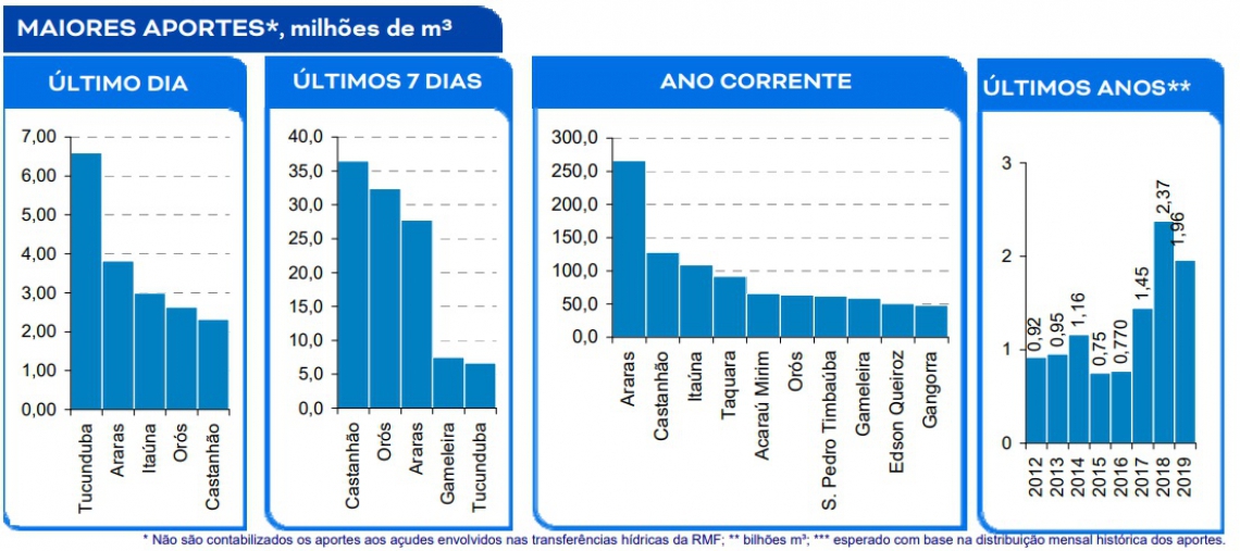 No acumulado do ano, todavia, o açude com maior aporte no Ceará é o Araras, localizado em Varjota, na Zona Norte do Estado. Desde 1º de janeiro, o reservatório acumulou 265,7 milhões de metros cúbicos. Atualmente, o Araras está com 48% da capacidade.