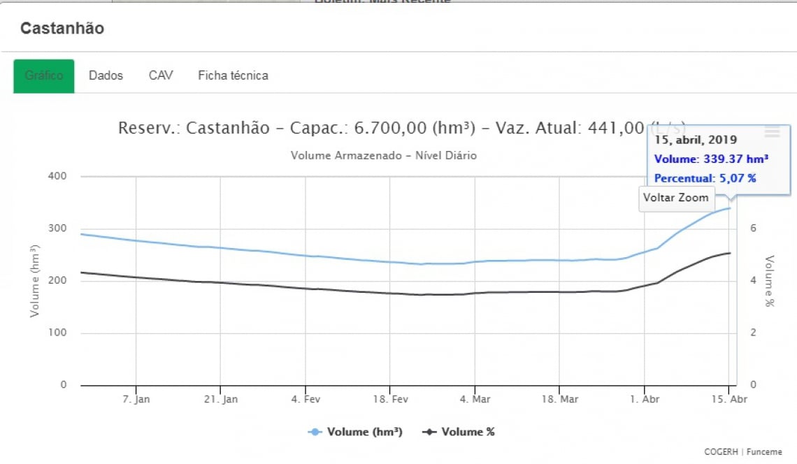 Descontado aquilo que evaporou e o volume de água liberado, o volume do açude aumentou 28 milhões de metros cúbicos. Essa quantidade representa crescimento de 0,82% no volume total. Embora pareça pouco, é significativo diante do tamanho do Castanhão.