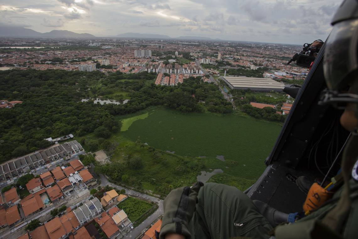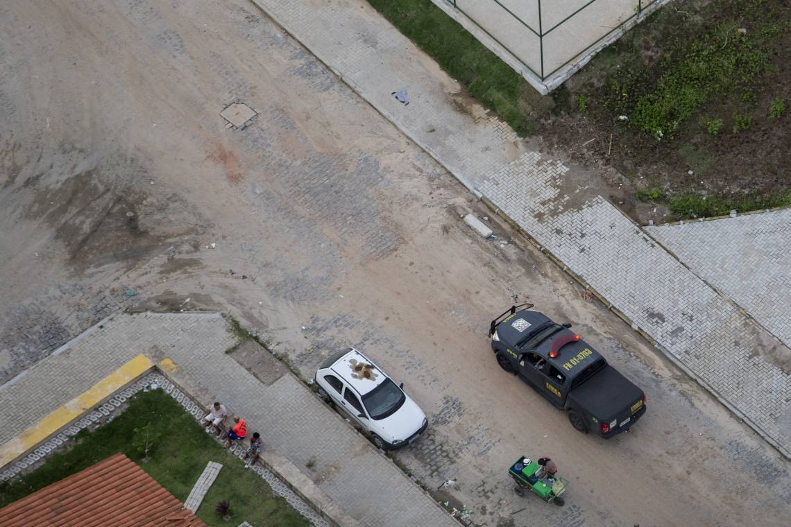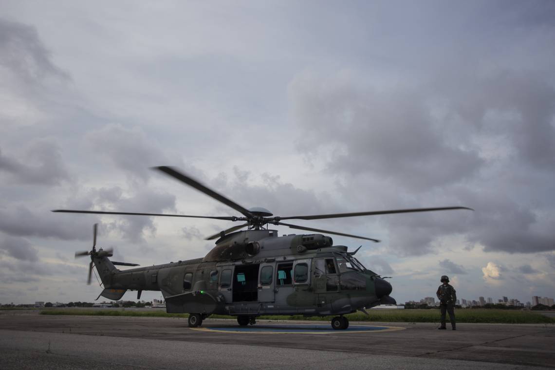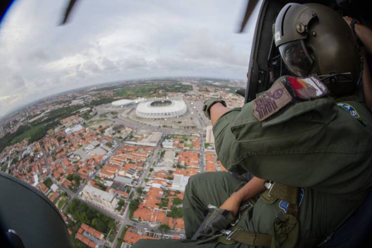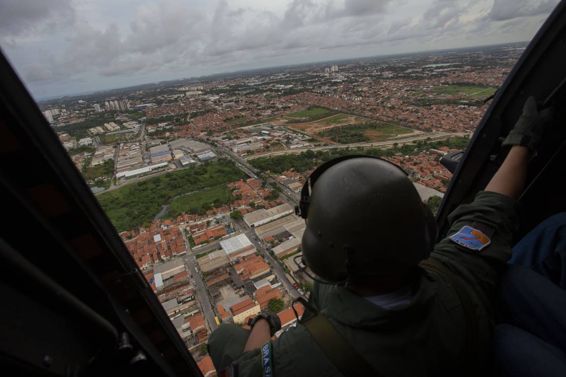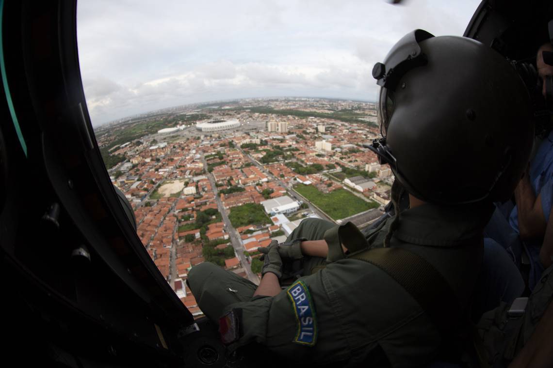 Homens da aeronáutica realizam um sobrevoo de segurança por Fortaleza na tarde desta quinta-feira, 27. O objetivo era realizar o monitoramento da região e prestar suporte a unidades terrestres. O Ceará hoje passa por um momento paralisação da Polícia Militar do Ceará, que já dura dez dias. No terceiro dia de motim, o governador do Estado, Camilo Santana, solicitou reforços de tropas nacionais para garantir a ordem e a assegurar a segurança pública no Estado. Ao todo são 300 homens da Força Nacional e cerca de 2,5 mil soldados militares brasileiros estão atuando no Ceará desde a última sexta-feira, 21.