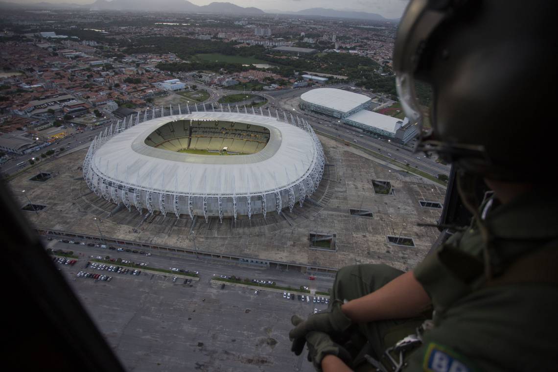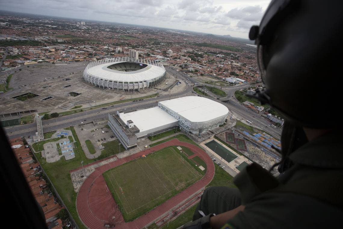 O destaque da ação de hoje foram o sobrevoo da arena Castelão e seu entorno. Um efetivo de segurança está programado para operar no local durante o jogo de hoje, entre o Fortaleza e o Independiente. A partida é válida pela primeira fase da Copa Sul-Americana. O público esperado deve superar os 45.172 torcedores estimados até a tarde de ontem, 26. A segurança no local será composta por um efetivo de 1.015 agentes de segurança. São 526 seguranças particulares, que vão atuar somente na parte interna e 489 profissionais oriundos de órgãos da segurança pública, incluindo os militares alocados na Operação Mandacaru.