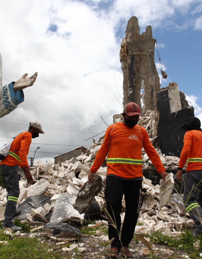 A nota ainda informou que "o laudo, emitido pela Defesa Civil, recomendou a demolição das estátuas. A Prefeitura imediatamente isolou a área e iniciou o processo de contratação de empresa especializada para execução do serviço".