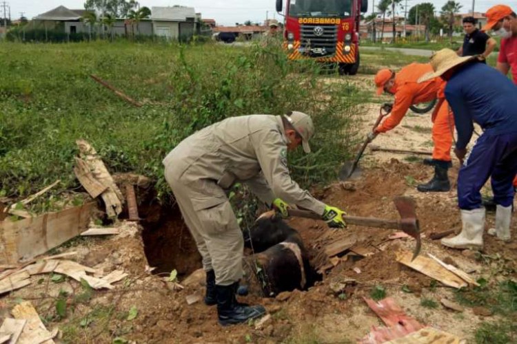 Neste fim de semana, 25 e 26 de fevereiro, equipes do Corpo de Bombeiros Militar do Estado do Ceará (CBMCE) realizaram os resgates de dois animais, um boi preso em um poço e um cachorro que havia caído em uma fossa. As operações ocorreram no município de Pacatuba, localizado a 32,4 km, na Área Integrada de Segurança 12 (AIS 12), e em Crateús, na AIS 16 do Estado, a 359,1 km da Capital.