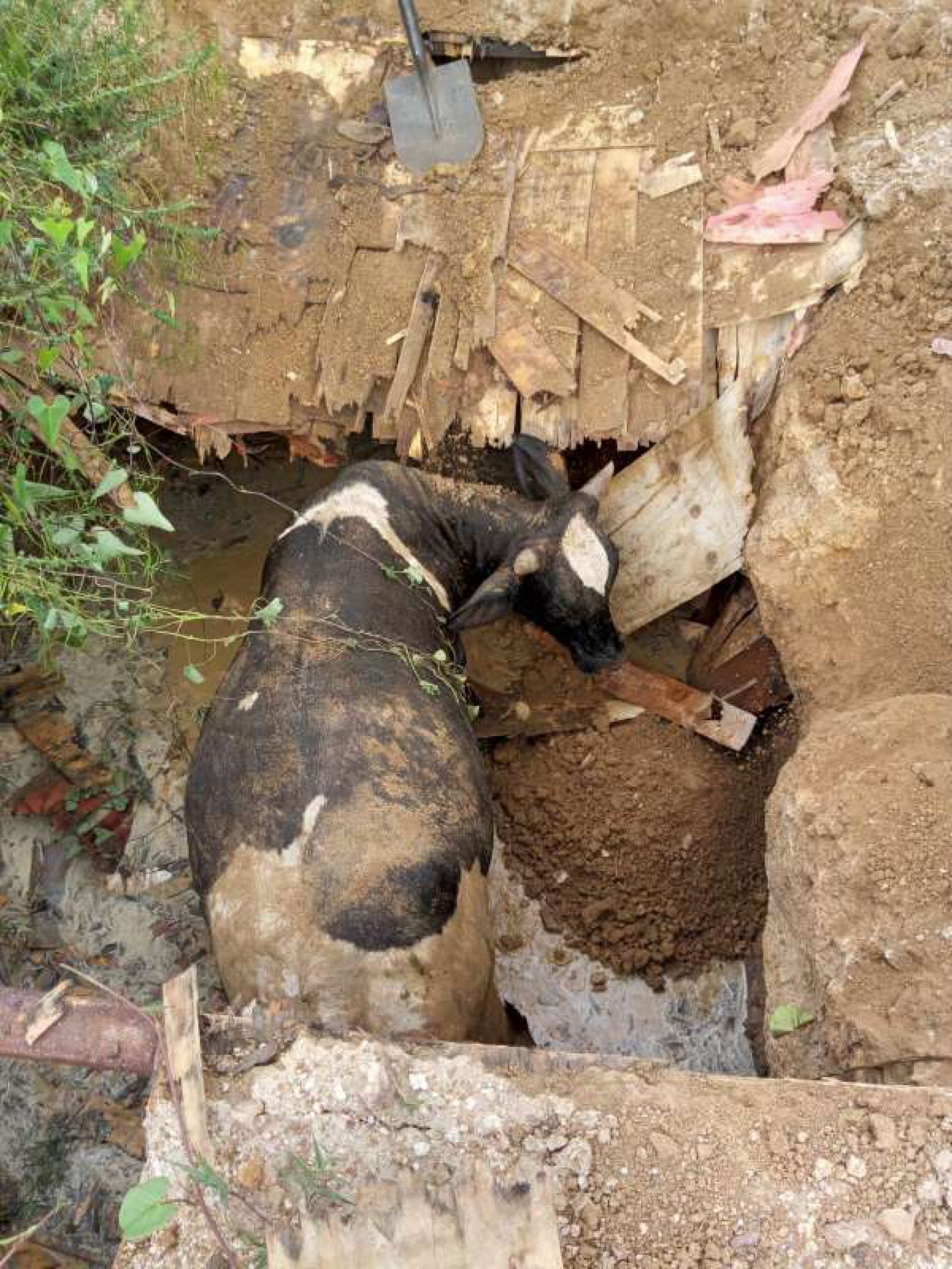 Ao chegarem ao local, imediatamente os bombeiros militares retiraram o cachorro com o auxílio de um cambão – uma ferramenta que consiste em um cabo com um laço e um nó de correr, no qual é feito uma amarração. Desta forma, o cachorro foi laçado com segurança, retirado da fossa e resgatado sem ferimentos.