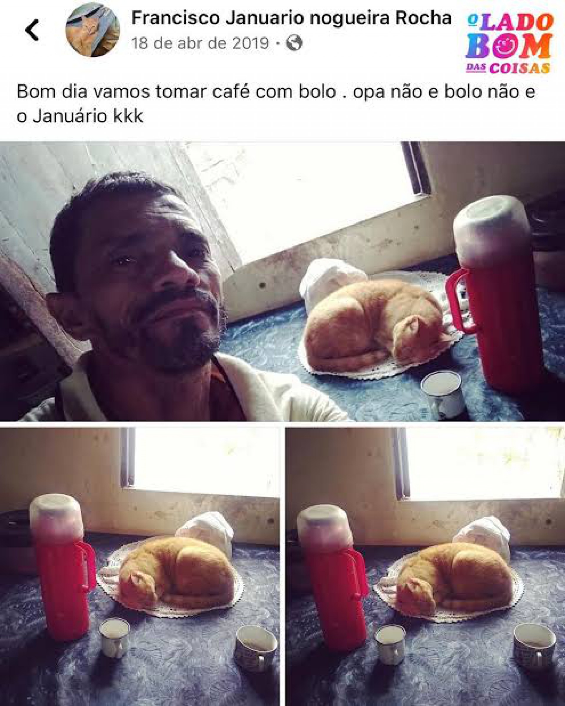 Morreu, nessa segunda-feira, 2, o gatinho Januário. O bichano viralizou nas redes sociais em 2019 ao ser confundido pelo tutor, Carlos Nogueira, com um bolo. O anúncio foi feito na página do Facebook do felino. De acordo com informações do homem, a morte do animal foi por causas naturais, devido sua idade avançada.