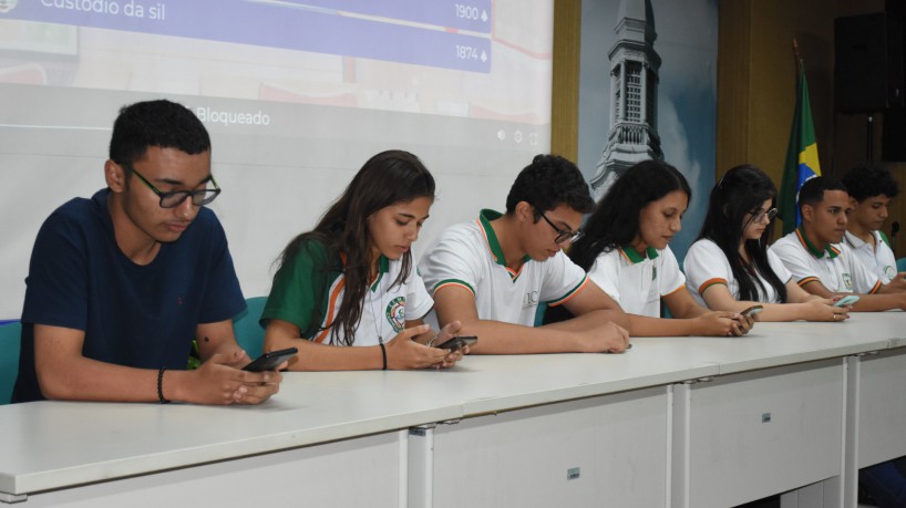Em meio aos gritos das torcidas e à euforia dos alunos ao ouvir o nome das escolas, os representantes de cada instituição se organizavam nas mesas, onde, por meio do site Kahoot, responderam a 15 perguntas em um tempo de 30 segundos. João Emanuel, 15, Raissa Mendes, 15, e Clara Costa, 15, dizem que ter educação fiscal na escola é uma oportunidade de aprender e de também de repassar o conhecimento para os outros.