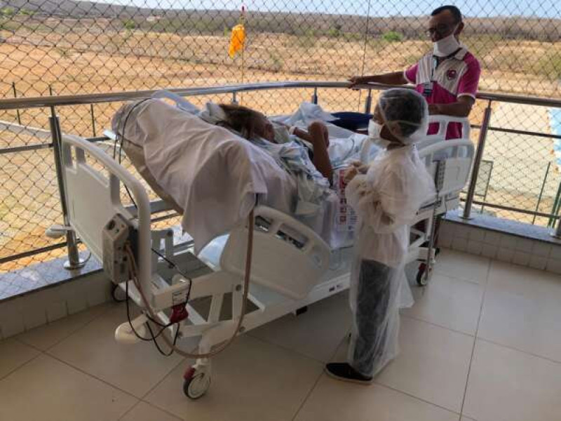 O encontro então foi realizado no primeiro andar do hospital, onde, além dos netos, Vera Lúcia contemplou a paisagem externa à unidade hospitalar.
