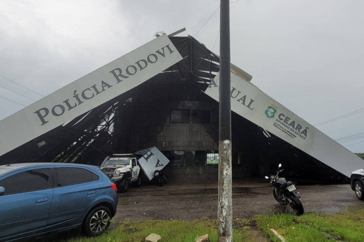 O teto de um posto da Polícia Rodoviária Estadual (PRE), localizado na CE-040, em Aquiraz, na Região Metropolitana de Fortaleza, desabou na manhã desta quarta-feira, 27. Caso aconteceu após as chuvas e ventos registrados nesta madrugada.