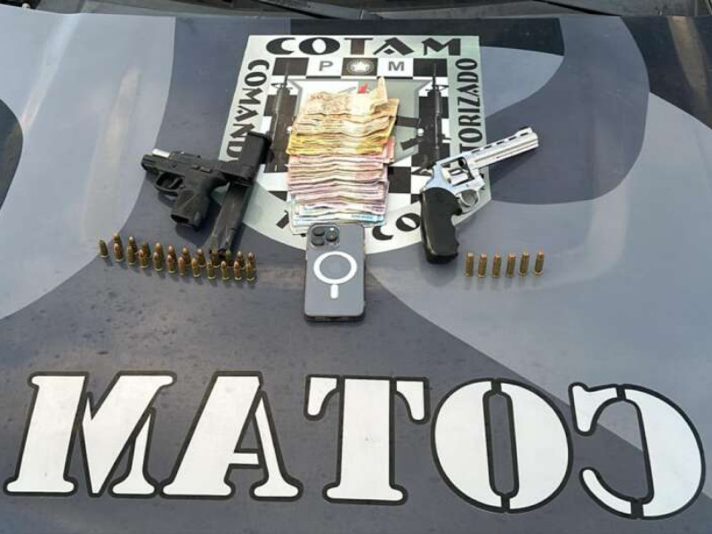 Após varredura, os PMs encontraram os armamento, uma pistola calibre 9mm e um revólver calibre 38.
