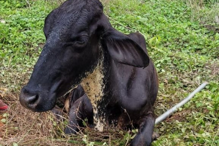 A vaca foi devolvida ao seu tutor com pequenas lesões causadas pela queda no terreno. Agora, o animal está em um local seguro em uma fazenda da região.