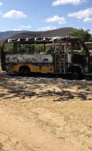Ônibus escolar é incendiado em Choró na madrugada desta quarta-feira