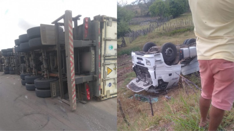 Algumas horas depois, às 7h35, um outro caminhão também tombou no trecho da BR-116. Segundo os agentes, o veículo teria perdido o controle ao acessar uma rotatória, tombando na rodovia e arrastando-se por cerca de três metros.