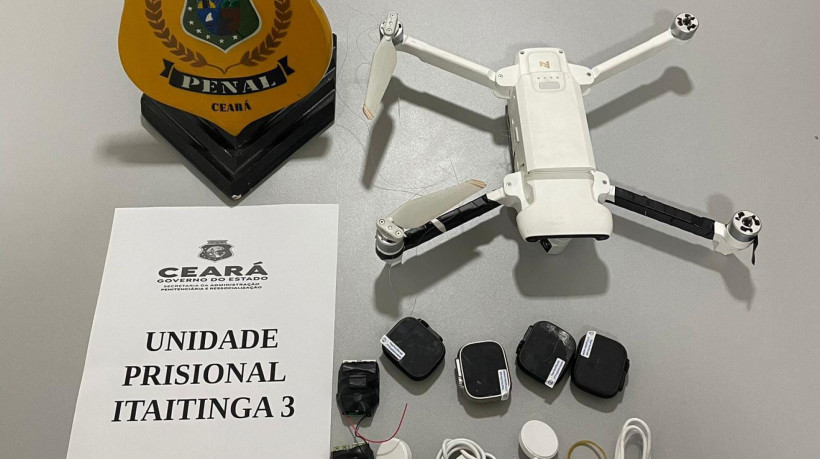 Um drone foi abatido durante a noite da última segunda-feira, 19, enquanto sobrevoava a Unidade Prisional Itaitinga 3, localizada na Região Metropolitana de Fortaleza (RMF). O equipamento estava sendo utilizado para a entrega de quatro smartwatches, dois carregadores, quatro cabos de carregamento e três chips de celular dentro do presídio estadual.