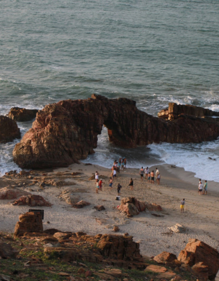 Cartão postal de Jericoacoara, a pedra com uma fenda no meio fica na beira do mar, e em um determinado período do ano, o pôr do sol ocorre “dentro” da pedra. Com maré alta, é necessário fazer a trilha pelo Morro Serrote, ou se estiver baixa, pela costa. O trajeto pode ser um pouco cansativo.
