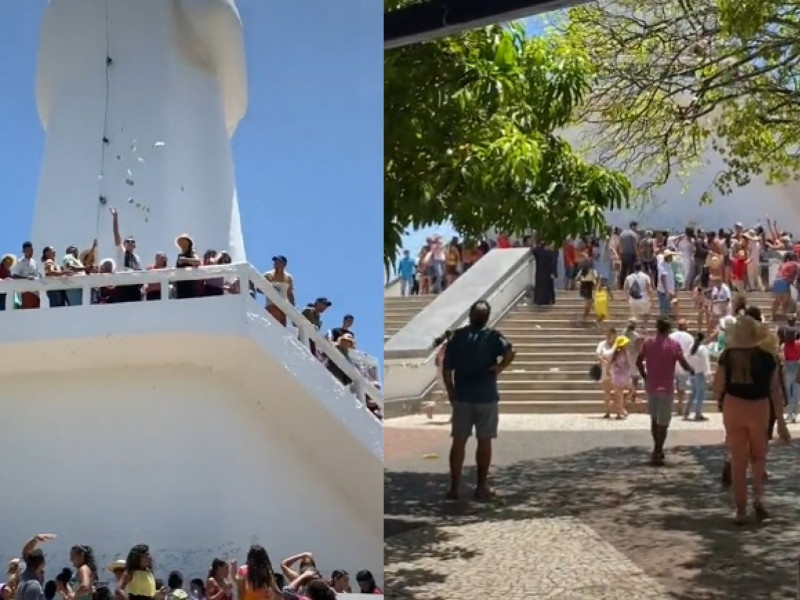 Um homem foi visto jogando notas de dinheiro para quem estava visitando a Estátua de Padre Cícero na Colina do Horto, localizada em Juazeiro do Norte. O momento foi registrado nessa segunda-feira, 31, por uma turista e postado nas redes sociais. Segundo visitantes do local, o homem estaria pagando uma promessa.