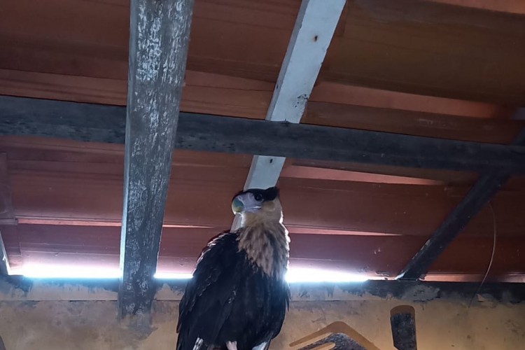 Animal de grande porte ficou preso em uma prateleira em um quartinho de ferragens. Após o resgate, carcará foi devolvido a natureza
