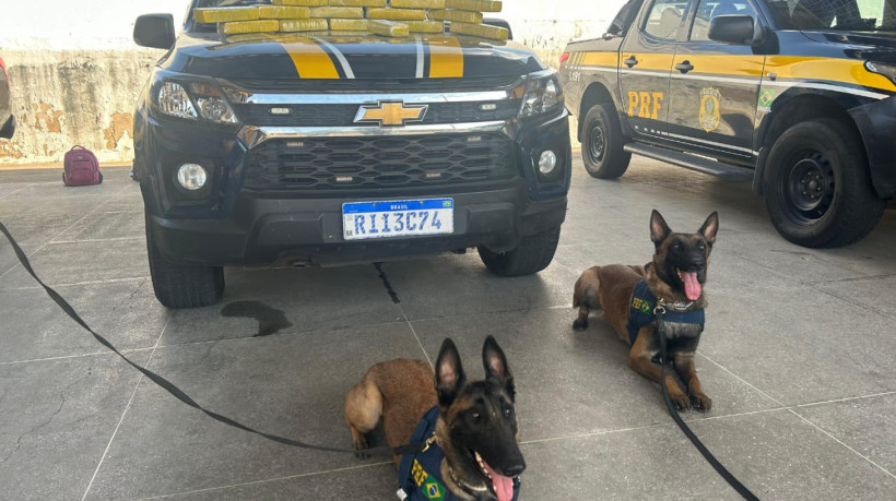 O material foi encontrado com auxílio dos cães farejadores K9 Faisão e K9 Guerra, durante uma fiscalização de rotina. Os animais são treinados para identificar substâncias ilícitas alocadas em bagagens, compartimentos e outros esconderijos. Ao todo, 14,658 kg estavam cuidadosamente embalados no fundo da mala.