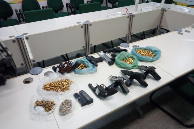 Com eles, a Polícia ainda encontrou três pistolas, um revólver e 185 munições.