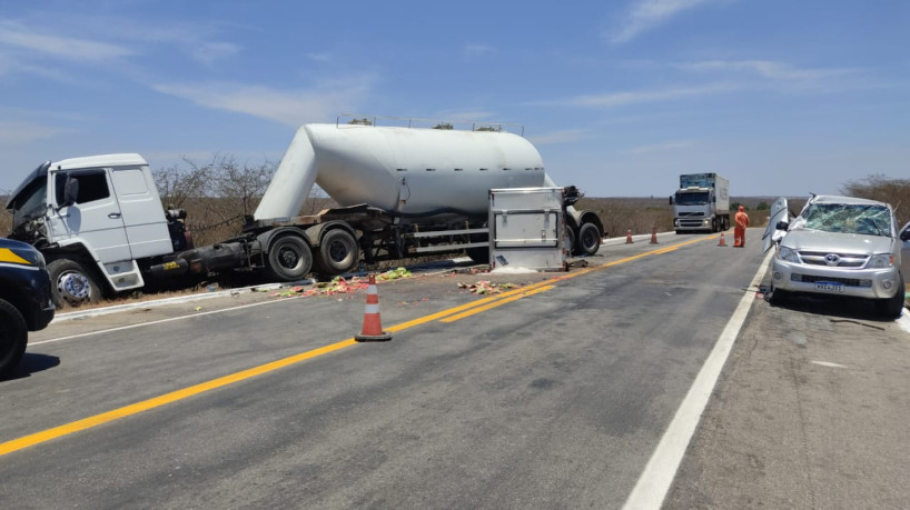 Um acidente envolvendo um caminhão e dois automóveis em São João do Jaguaribe, a 188,9 km de Fortaleza, no km 225 da BR-116, foi registrado na manhã desta sexta-feira, 29. Segundo a Polícia Rodoviária Federal (PRF), três pessoas foram levemente feridas. Todas as vítimas já foram socorridas.